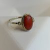 14 karaats geelgouden ring met bloedkoraal en bontjes.