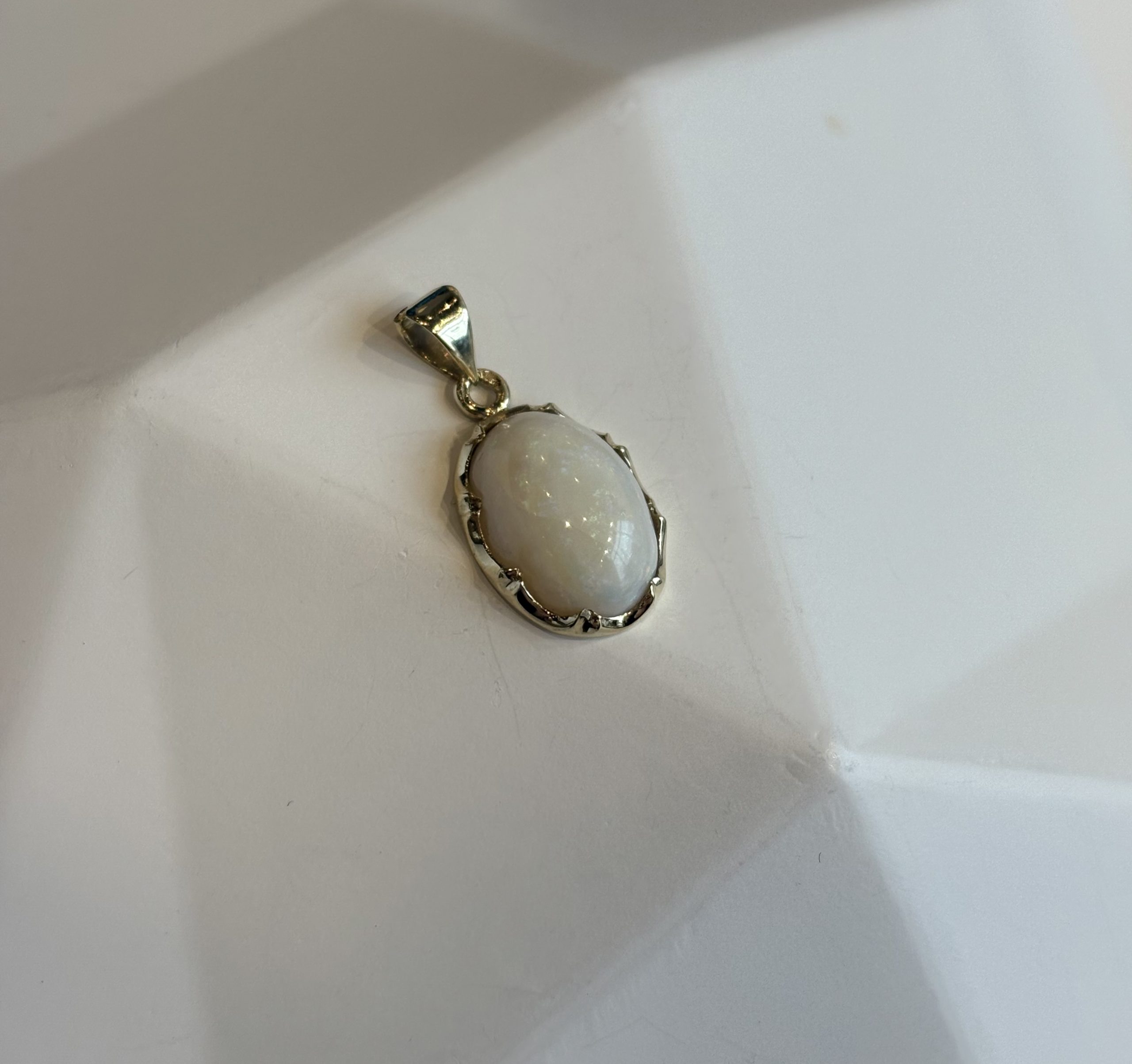14 karaats geelgouden melkopaal hanger. Ovaal cabochon geslepen afmeting 14,25x10mm.